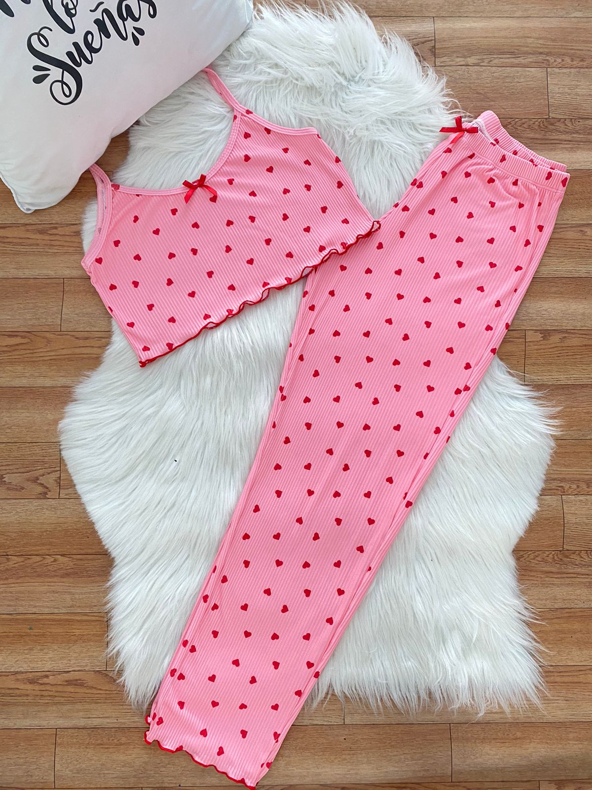 Pijama Dakota Rib Corazones Rojo