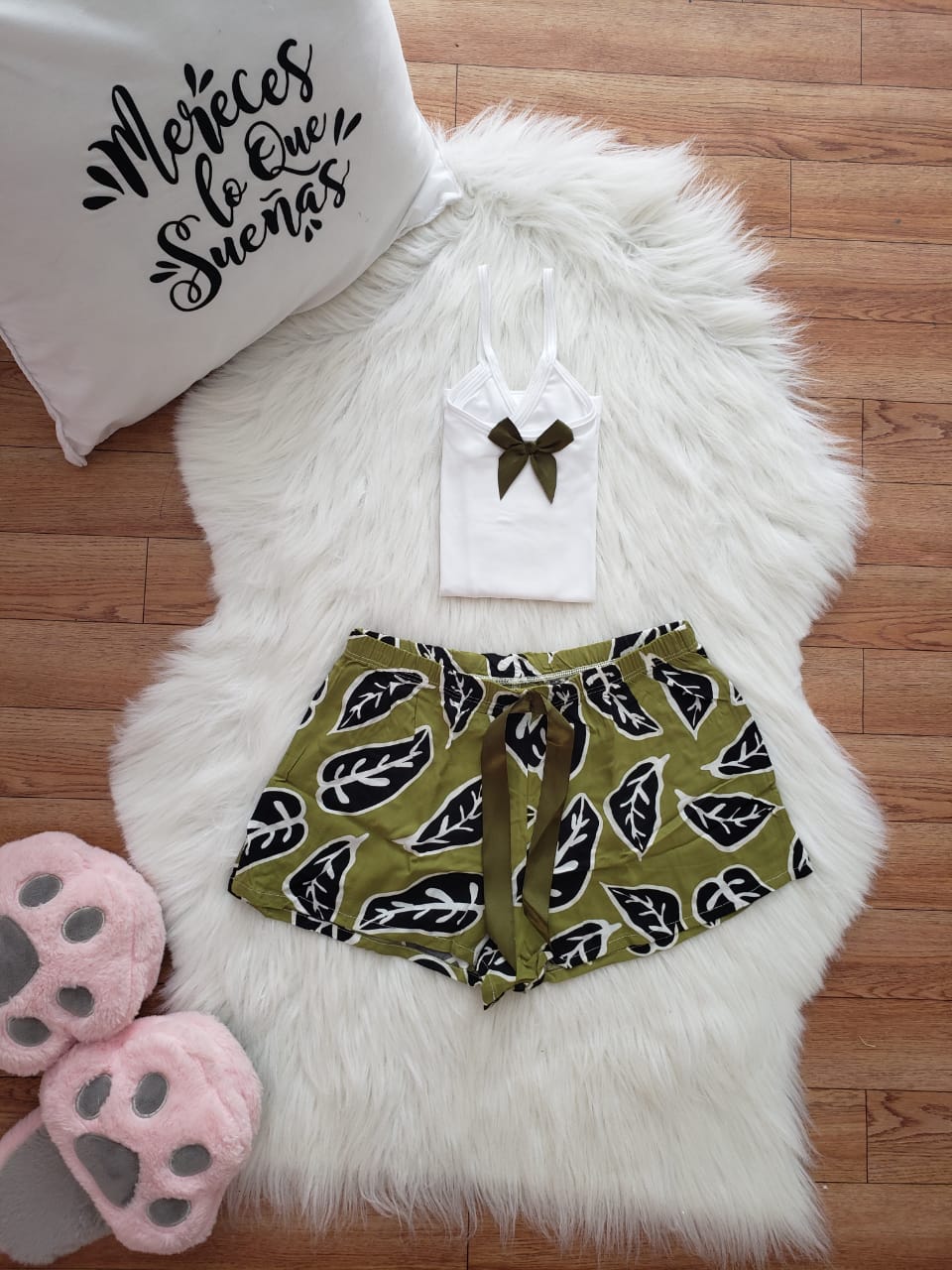 Pijama Victoria Matas Negras Fondo Verde Blusa Blanca